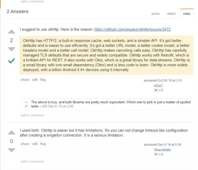 这又触及到我的知识盲区了,首先来一波面向百度学习,直接根据关键字httpclient和okhttp的区别、性能比较进行搜索,没有找到想要的答案,于是就去overstackflow上看看是不是有人问过这个问题,果然不会让你失望的