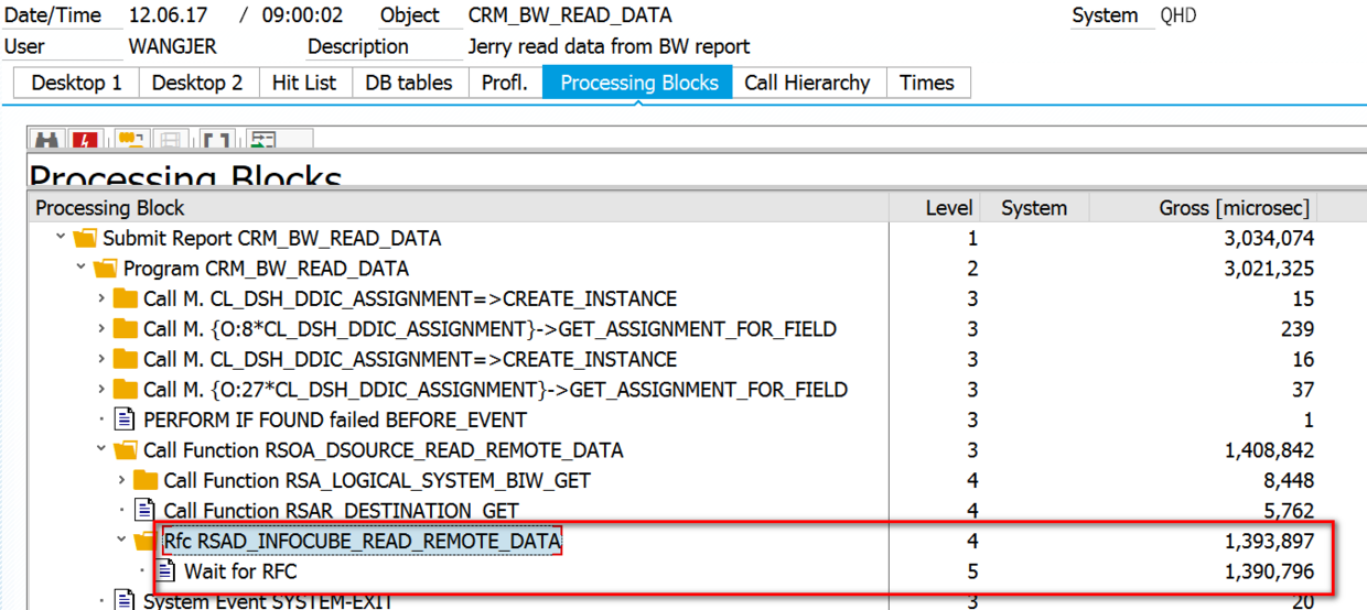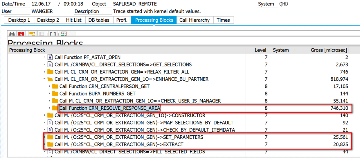 I use report CRM_BW_READ_DATA in QHD/504 for demonstration. Check these two SAT traces:
