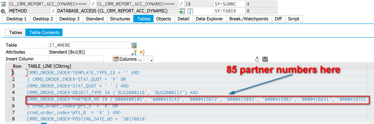 CRMD_ORDER_INDEX~PARTNER_NO IN ('0000400105', '0000415143', '0000415872', '0000415893', '0000415961', '0000416631', '0000416721', '0000416746', '0000417016', '0000417054', '0000417058', '0000417093', '0000417672', '0000417681', '0000417740', '0000417865', '0000418050', '0000418597', '0000418812', '0000420391', '0000420441', '0000420752', '0000420873', '0000420881', '0000420882', '0000420925', '0000420932', '0000420935', '0000420955', '0000421055', '0000421094', '0000421316', '0000421721', '0000421722', '0000421724', '0000422264', '0000422404', '0000422419', '0000422483', '0000422765', '0000422893', '0000423049', '0000423059', '0000423060', '0000423061', '0000423062', '0000423063', '0000423064', '0000423065', '0000423067', '0000423142', '0000423555', '0000424451', '0000424467', '0000424840', '0000700364', '0000703460', 'ARPANA', 'BAKER', 'BOUWHUIS', 'BUSCHC', 'CRMAUTOTST', 'CRMSUPPORT', 'D019666', 'D031132', 'D032824', 'DIGGS', 'DUMANN', 'FREEMAN', 'KING', 'KRATZN', 'KRUSE', 'LONDON', 'LUCKINSE', 'MILLER', 'MYERS', 'PORTALCHM', 'RYZHOVA', 'SCHULZ', 'SCHUPPM', 'SHRAMASUM', 'WANGJ', 'WANGJ', 'WHITE', 'WILSON', 'ZELLERSU') AND