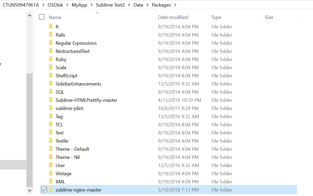将Github下载的扩展解压之后,放置到sublime text的packages文件夹下: