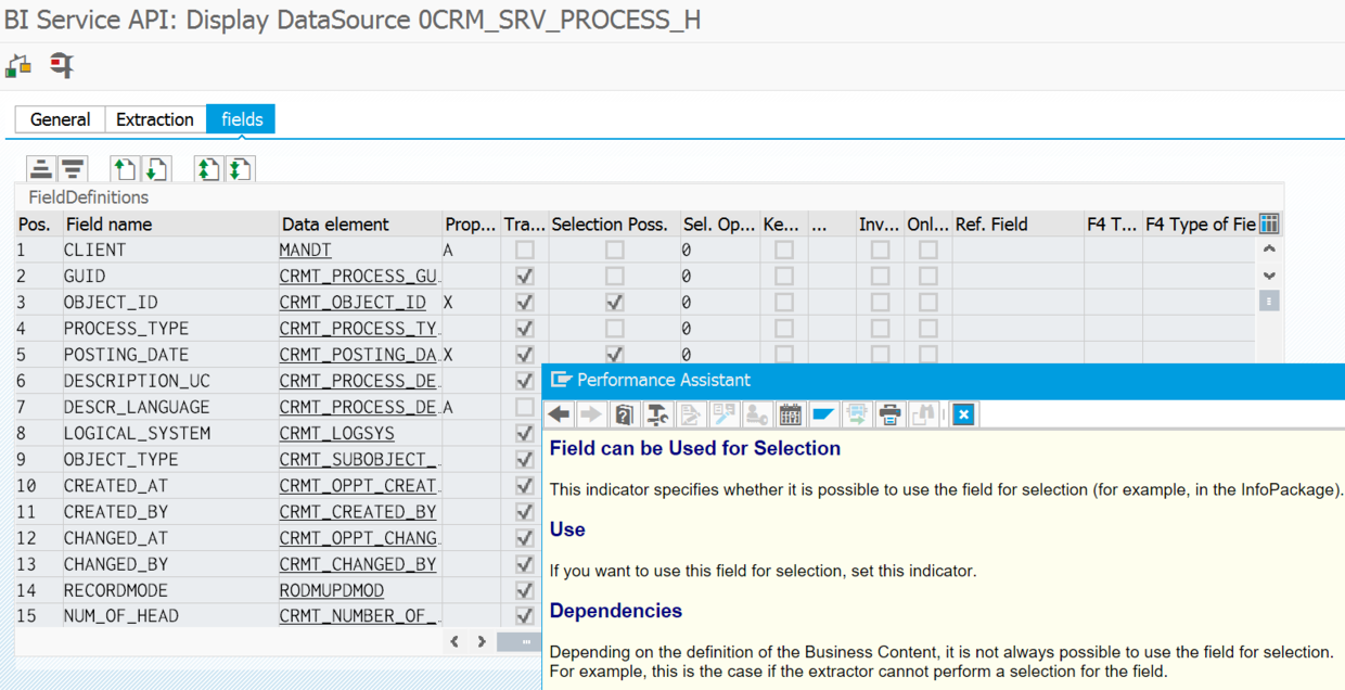 outbound BW destination: table roosprmsf tcode RSA2, DS name: 0CRM_SRV_PROCESS_H