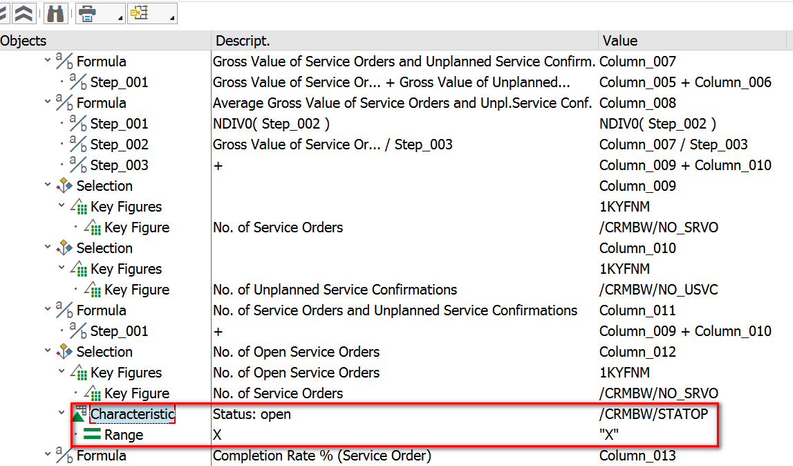 tcode RSRTQ, query name: /CRMBW/SVO_C01_Q0001: