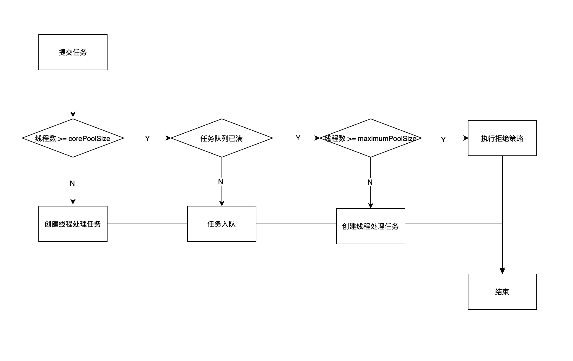 - 如果上面条件都不成立,同时线程数量已经达到上限,会采用拒绝策略来处理任务