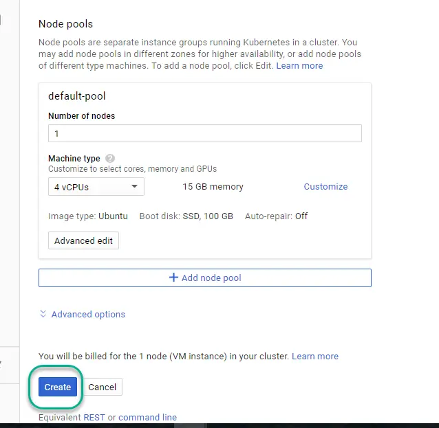 登录Google Cloud platform,创建一个新的Kubernetes Cluster: