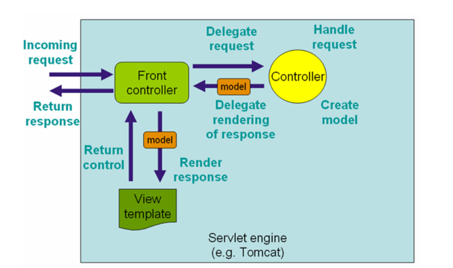 - 当客户端发送请求到前端总控制器(Front Controller),在这里前端总控制器有两种实现《Servlet》和《JSP》。