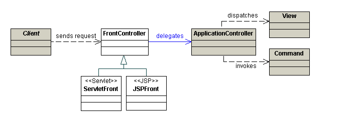 - 应用控制器通过委派调用一个命令对象(Command),然后分发给对应的视图处理器(View)。
