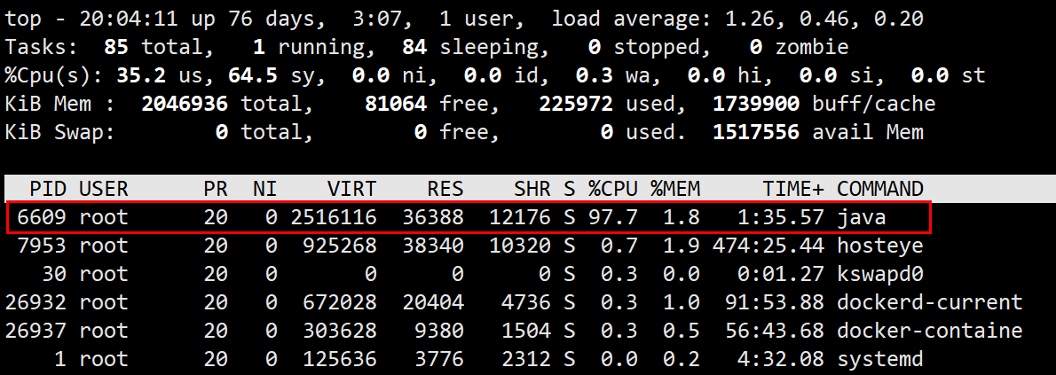 1 用 top 命令找出 CPU 占比最高的进程 ID