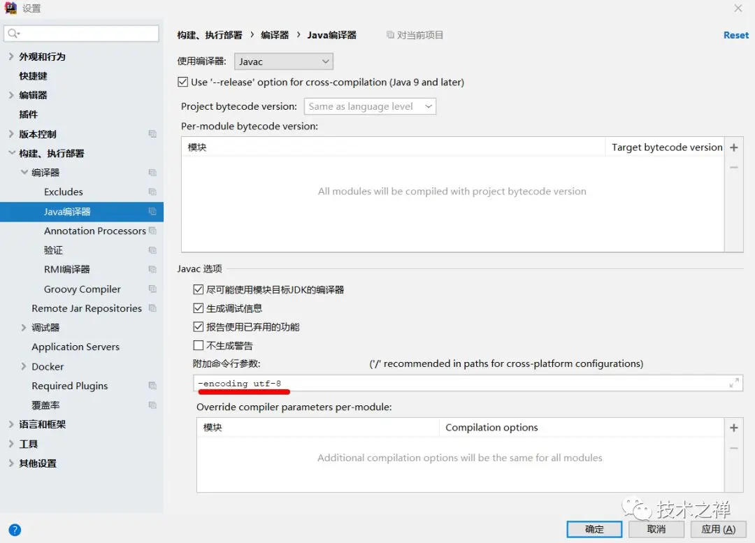 弹出设置窗口选择:构建、执行部署-》编译器-》Java编译器