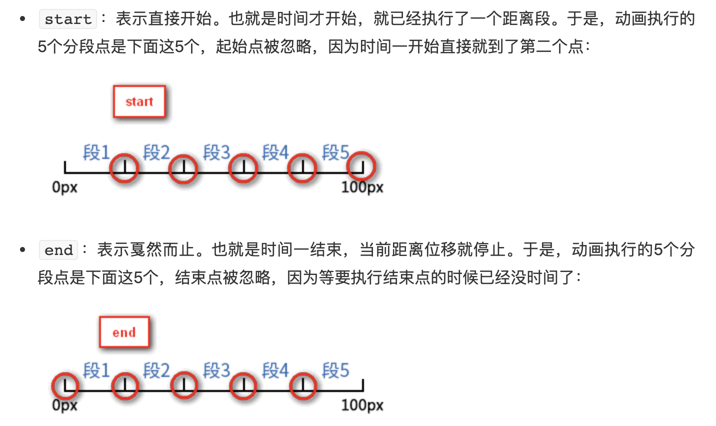step-start等同于steps(1, start),step-end等同于steps(1, end)或者steps(1)