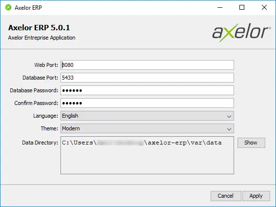 将下载的 zip 包解压,双击执行 axelor.exe,就可以本地安装 Axelor。