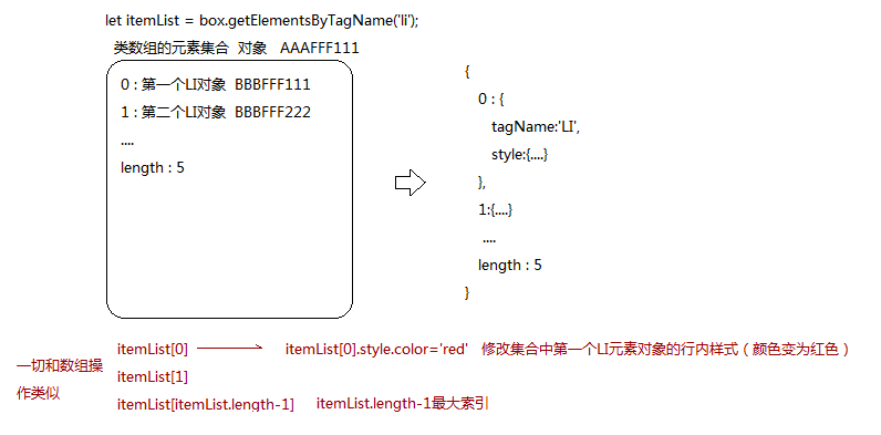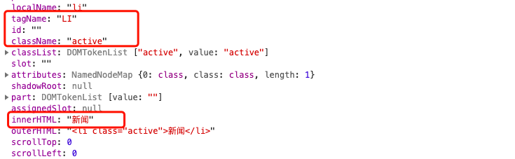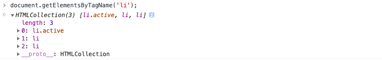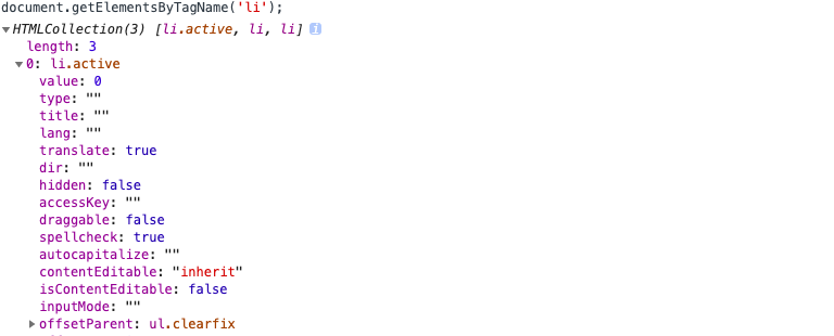 li标签前面都有一个数字索引,我们可以通过相应的索引,获取到每个li,这个获取到的li集合,我们称之为类数组。list[0](代表第一个li)打开索引为0的这个li,我们看到如下: