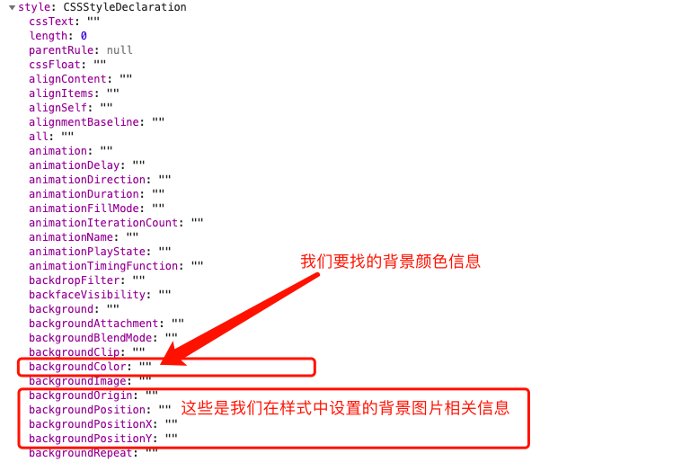 空字符串,是因为我们之前并没有设置过背景颜色。 -
