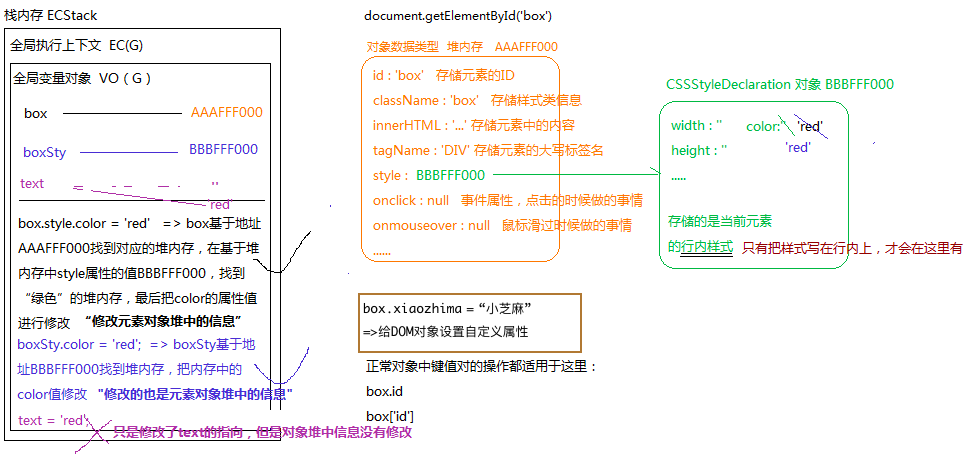 let text = box.style.color; //=>获取的是color初始值'',基本类型值,直接存在栈内存中