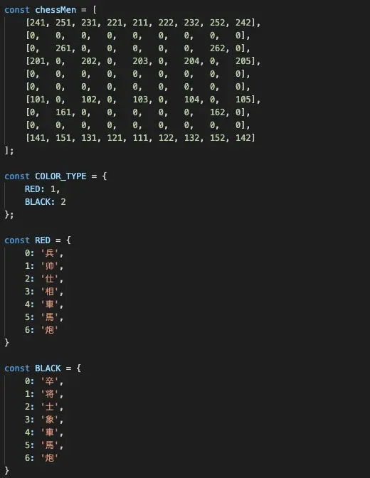 ${colorType + colorName + colorIndex}拼接,如24代表黑方车一,无棋子使用0 - 2.定义