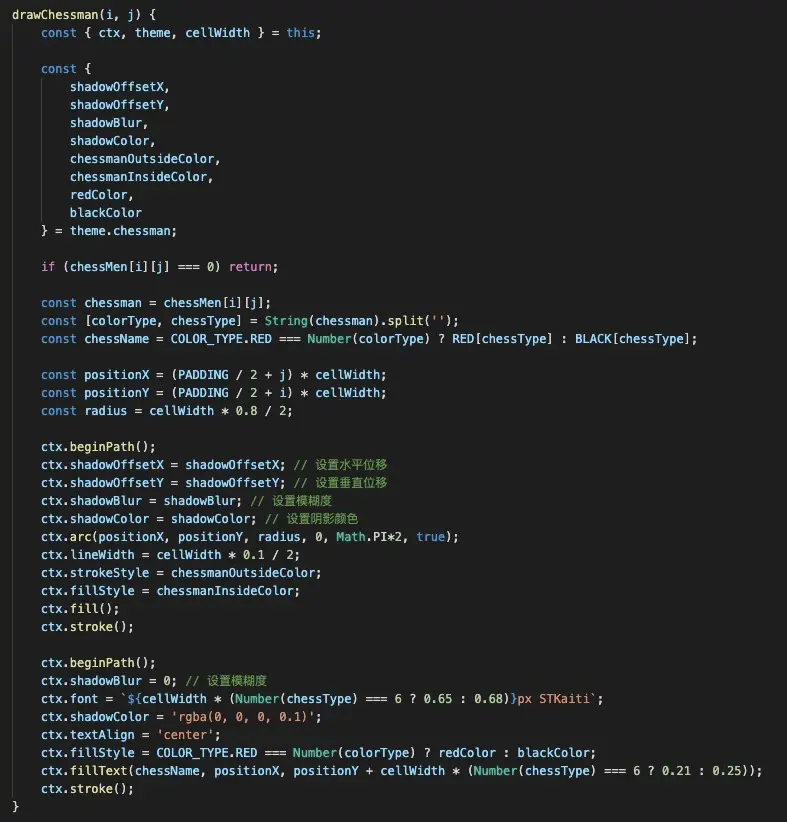 ctx.shadowOffsetX&Y shadowBlur shadowColor 设置阴影,让棋子更立体
