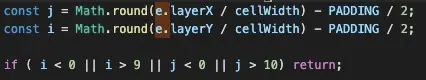 用 canvas 点击位置 layerX|Y 除以格子宽度 cellWidth ,再减去棋盘边距。
