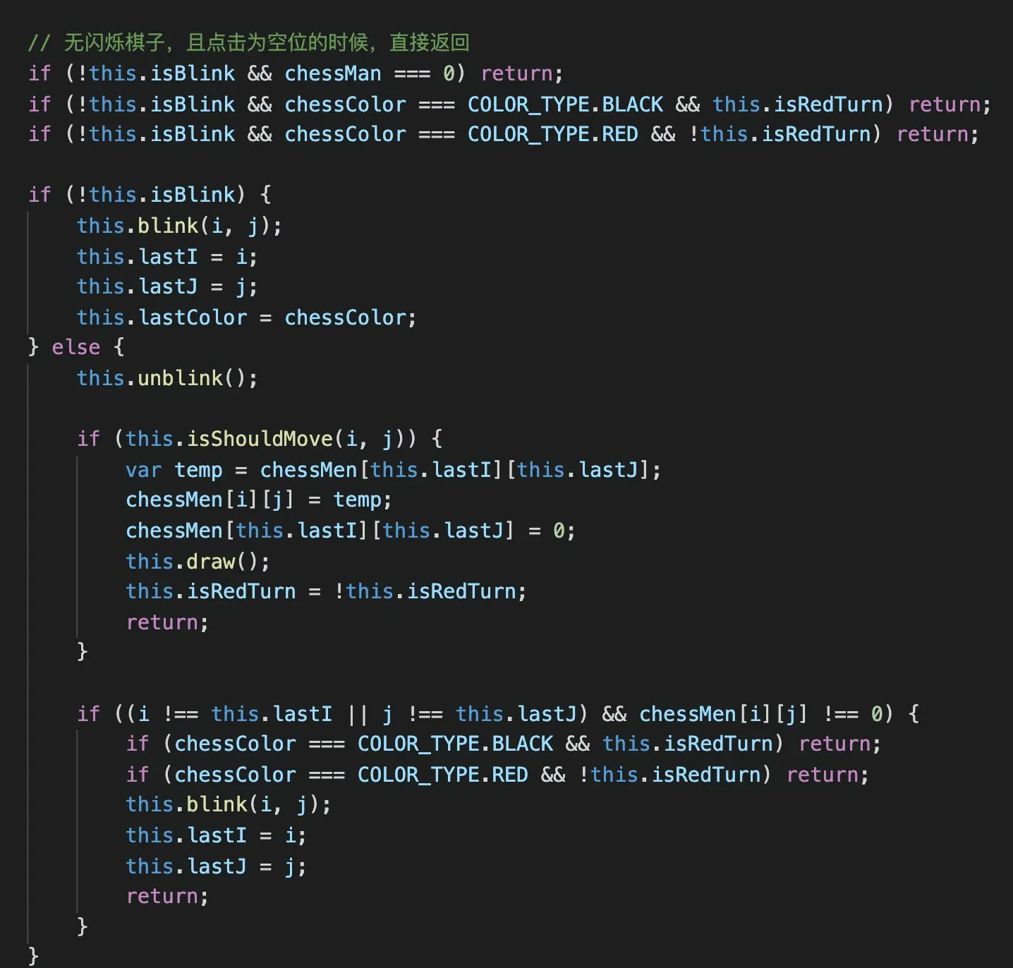 - 如果本次点击棋子与上次不一致且为同方棋子,先清除1s的擦除、绘制定时器,再执行闪烁逻辑。
