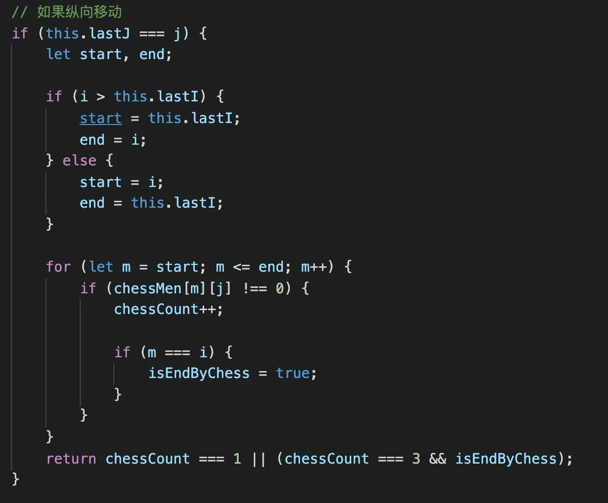i 表示目标纵坐标,j 表示目标横坐标,this.lastI 表示移动前纵坐标,this.lastJ 表示移动前横坐标