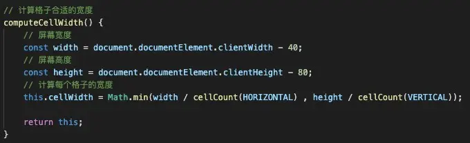 所以我们需要先计算网格的宽高,因为网格是正方形的,所以代码里直接称为宽度。