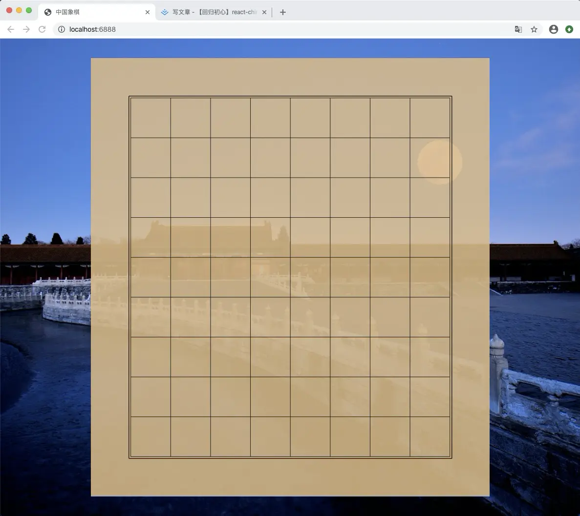 细心的小伙伴可能观察到了楚河汉界的地方不应该有竖线的,这里我们根据纵线不是第一条,也不是最后一条的时候,简单处理一下就ok了。