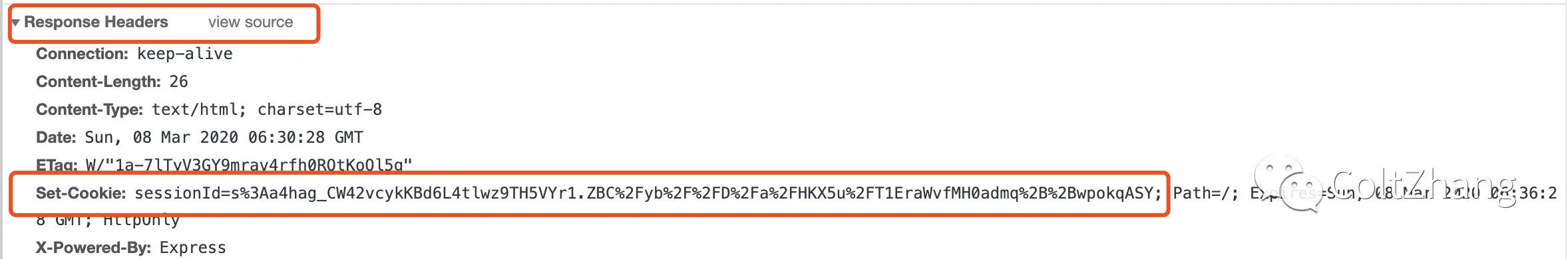 console.log('Cookies:', req.cookies); // 普通cookie,Cookies: { id: '1234' }