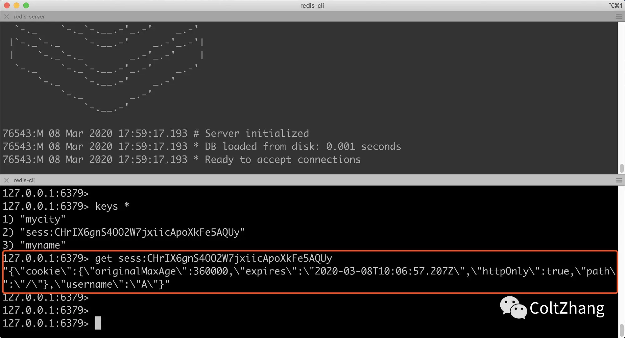 这里将数据存储到redis中。需要注意的是,sessionId对应的数据存储在redis中,通过req.session可以获取到所有数据。