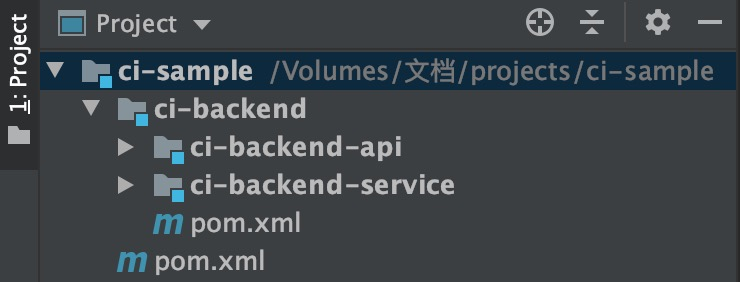 接着右键刚创建好的module,以同样的方法创建两个子module:ci-backend-api、ci-backend-service,此时的项目架构图如下: