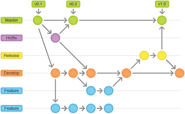 - 当你需要一个发布一个新Release的时候,我们基于Develop分支创建一个Release分支,完成Release后,我们合并到Master和Develop分支