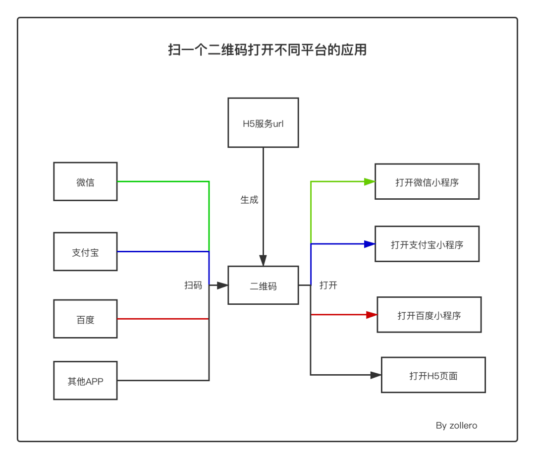 每个平台(比如微信,支付宝,头条)能将二维码的内容和各自平台内的应用(小程序)关联起来;