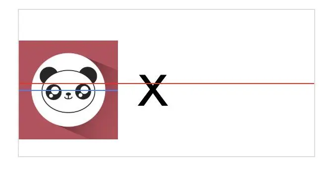 如图所示(为了更明显我使用了色块来标识),当子元素(图片)设置了 vertical-align:middle,并不是绝对居中,而只能说是近似居中。子元素的垂直中心线与父级元素基线的位置往上二分之一 X 高度(X 的中心) 所在线对齐,通俗一点讲,就是图中红线表示父元素的垂直中心线,蓝线表示子元素的垂直中心线,可以明显的看到 蓝线 与 X 的中心保持一致,但较红线偏低。如果绝对居中的话,两条线应该完全重合。
