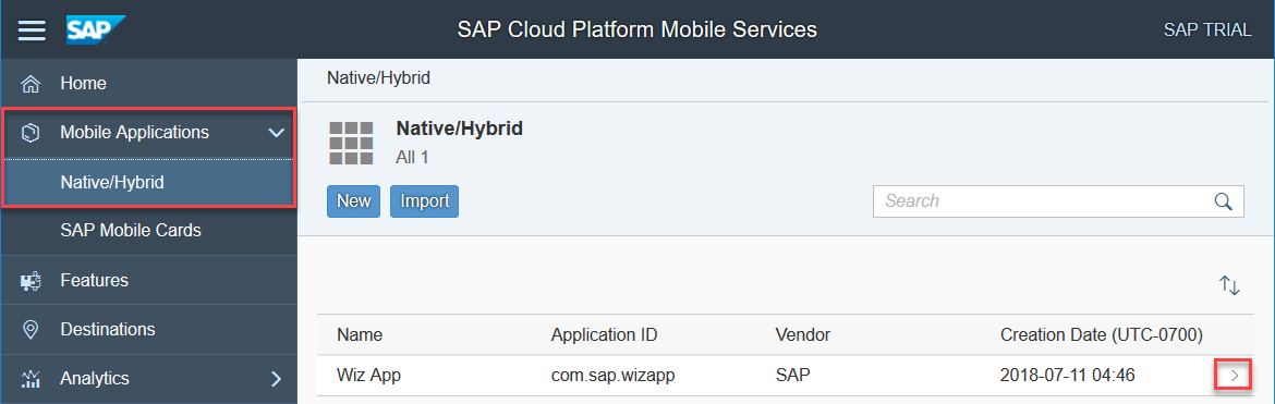 登录SAP Cloud Platform Mobile Services management cockpit: