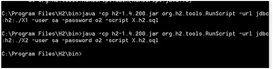 C:\Program Files\H2\bin>java -cp h2-1.4.200.jar org.h2.tools.RunScript -url jdbc