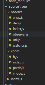 在observe index.js中 initState方法是对传来的配置分类处理,initData方法对data数据处理接受传来的数据对象 并代理了数据 然后使用Observer类接受数据去观测