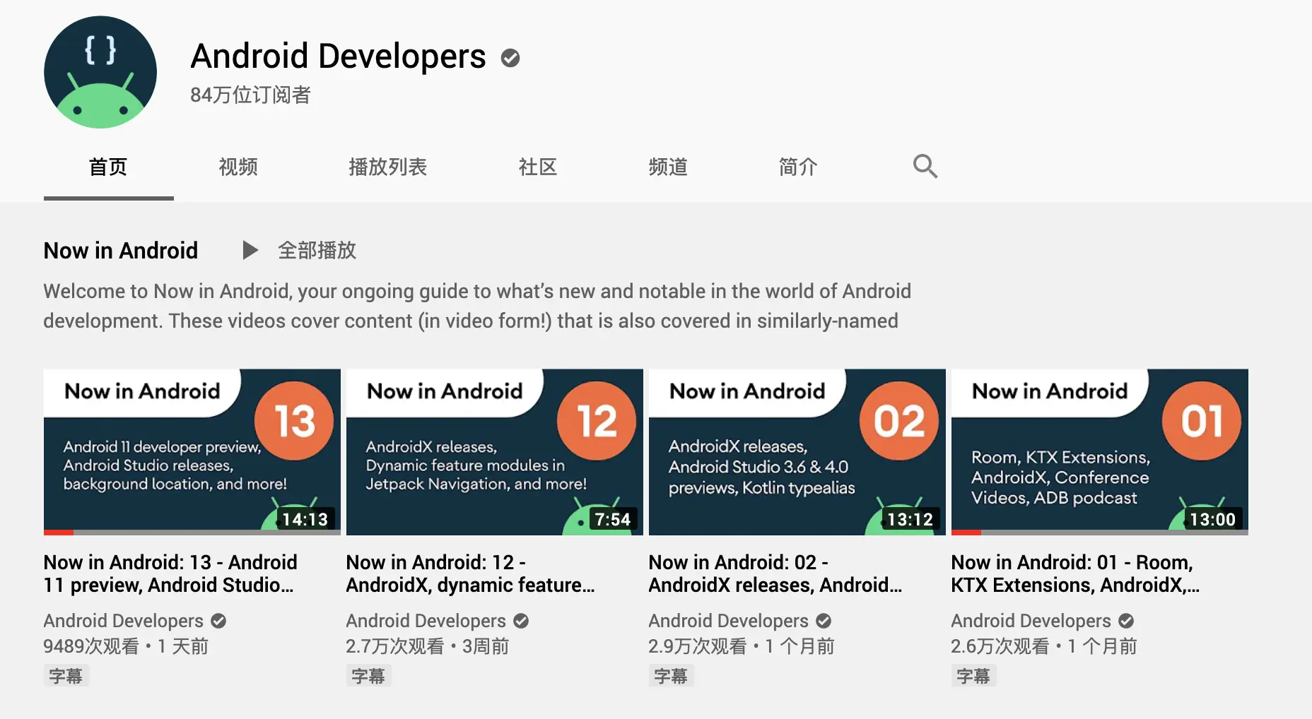- Android Developers 官方 Youtube 频道