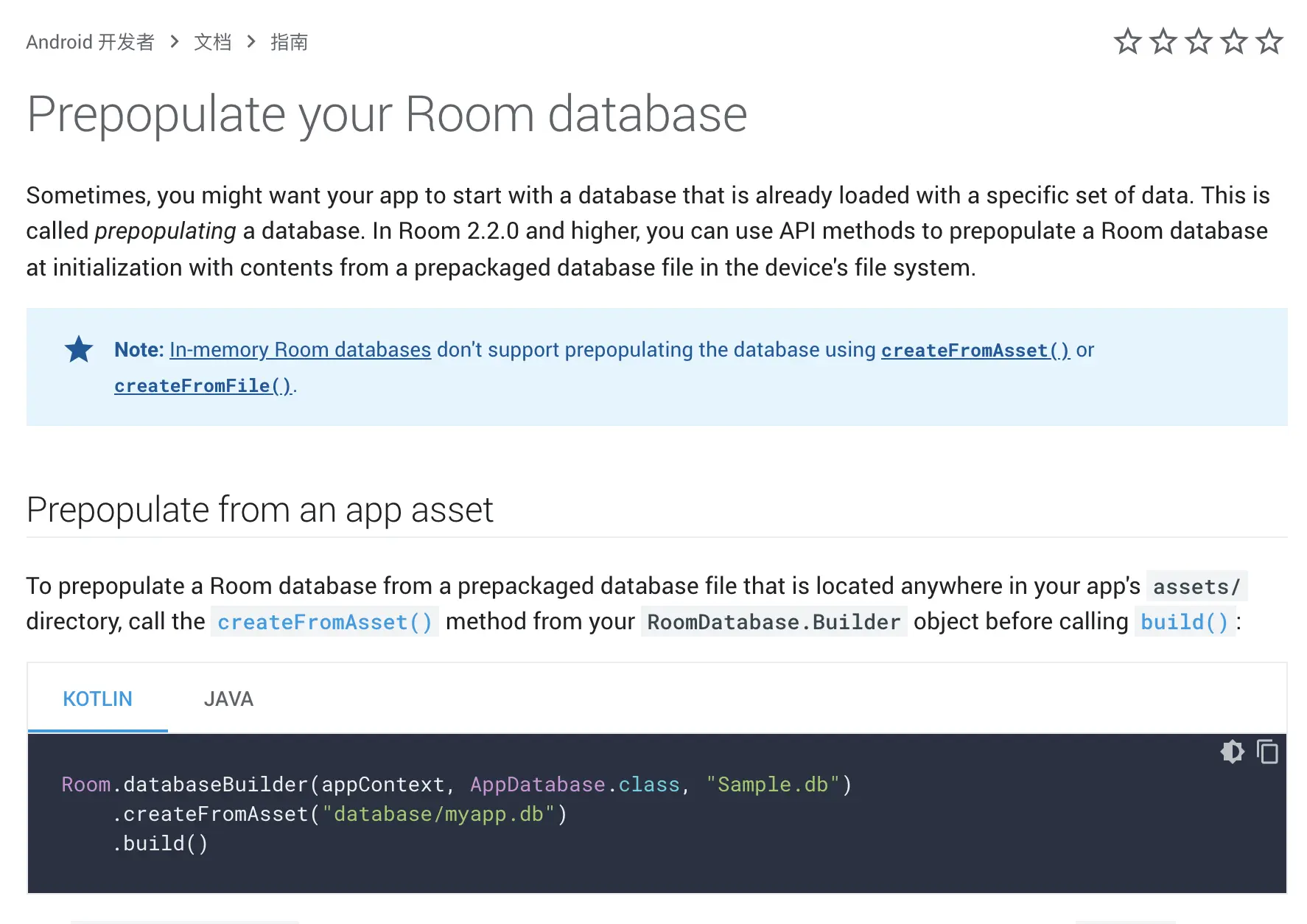 在 Room 2.2.0 正式版中,支持了通过本地文件初始化数据库,目前支持以下两种初始化方式:
