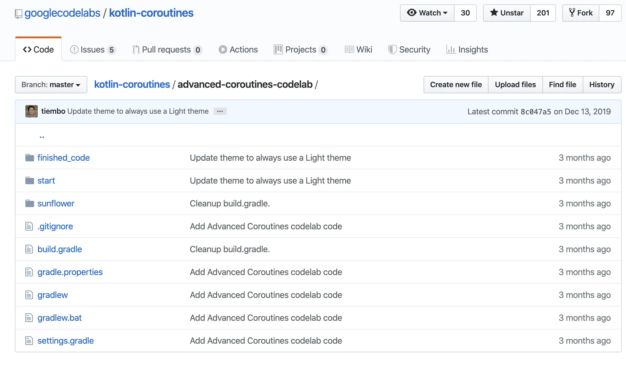 Tiem Song 和 Sean McQuillan 创建了新的 Codelab 来帮助大家学习:如何使用协程、LiveData 以及 Kotlin Flow 来编写程序,同时提供了完整代码的 GitHub 仓库地址。