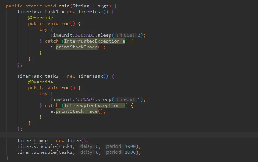 Timer底层是使用单线程来处理多个Timer任务,这意味着所有任务实际上都是串行执行,前一个任务的延迟会影响到之后的任务的执行。