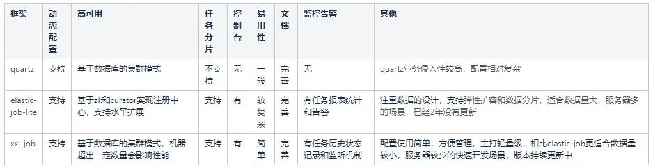 对于并发场景不是特别高的系统来说,xxl-job配置部署简单易用,不需要引入多余的组件,同时提供了可视化的控制台,使用起来非常友好,是一个比较好的选择。希望直接利用开源分布式框架能力的系统,建议根据自身的情况来进行合适的选型。