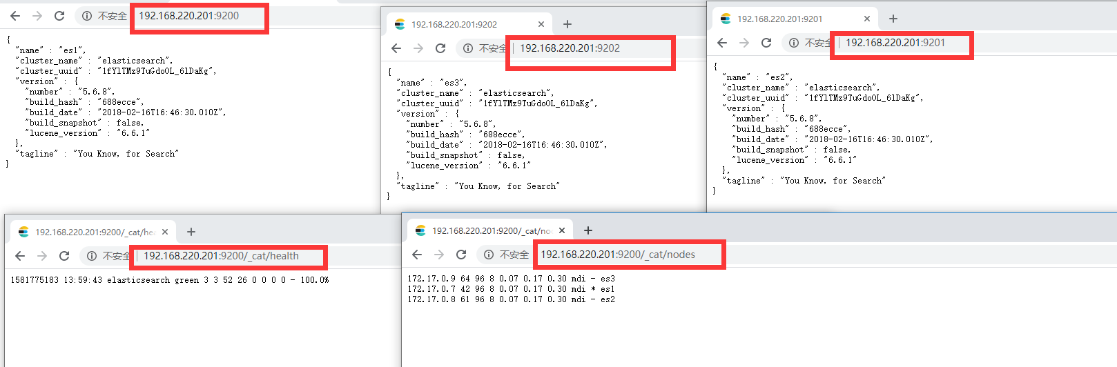 discovery.zen.ping.unicast.hosts: ["192.168.220.200:9300","192.168.220.200:9301","192.168.220.200:9302"]