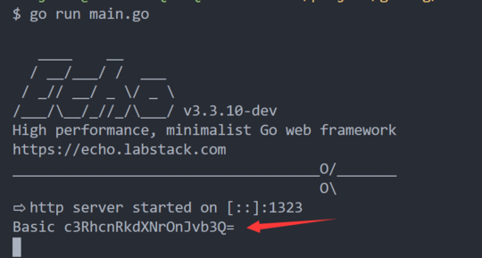 那么我们怎么拿到加密后的用户名和密码?在 echo 框架中内置了简单 BasicAuth 中间件,我们可以直接使用官方的实例代码改造: