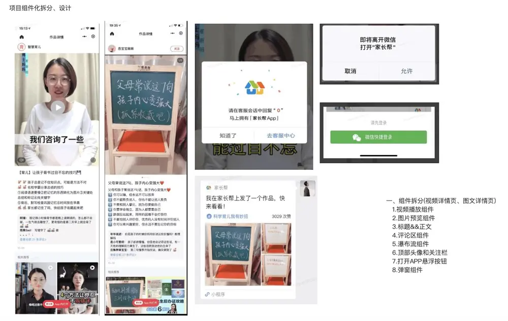 上图是实际项目(已上线)中部分功能拆分的示例:需求:视频详情页(左1)、图文详情页(左2)、弹窗(左3)、弹层(左4,下)