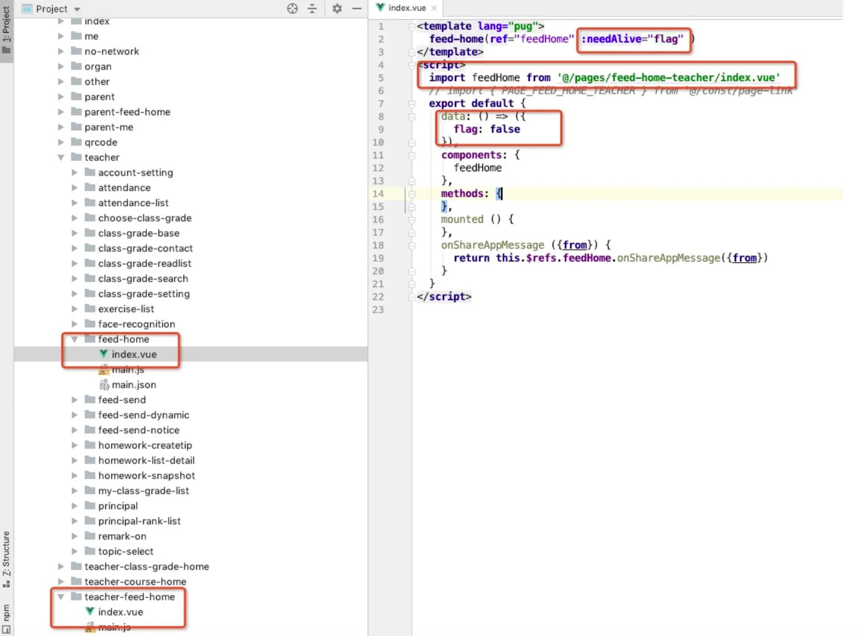 feed-home/index.vue 是一个页面,出于分包需求,需要在主包和子包都有一个该页面,简单操作,可以直接复制一个。前期简单了,后期的维护就不简单了!所以从单文件组件的本质出发,取巧,通过组件引入的方式在子包引用了主包的一个实例。项目实测可以满足。