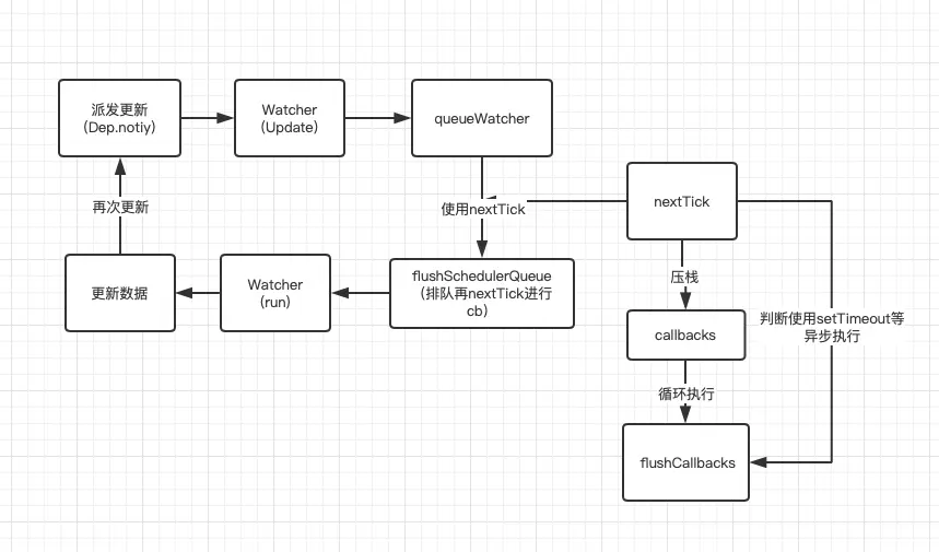 来了来了,我来填坑了之前响应式文章中,关于最后Dep的notify后通知Watcher的run去更新数据的中间环节省略内容,以及nextTick的内容,这篇文章讲会大致说一下。大致的会分为一下两个部分
