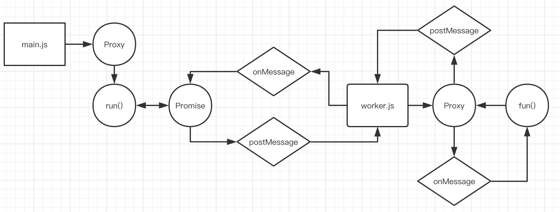 无法保证worker线程执行顺序,但是能确保返回数据顺序, 主线程通过Proxy来代理worker的通信,并返回Promise对象,执行时触发post message事件,worker通过proxy监听到message,获取需要执行的函数,并返回结果,主线程监听到message有event.data就resolve函数修改Promise状态
