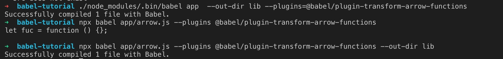 5.调用babel转译代码,这里可以使用npx 或者 用相对路径调用babel下的可执行文件