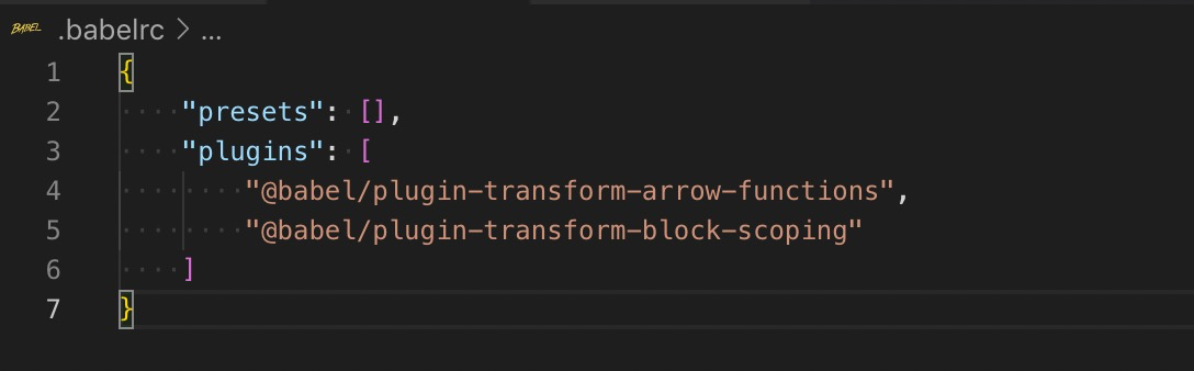以.babelrc为例(转译let 与 箭头函数),与package同级建立.babelrc文件,去官网找需要转译的插件名并安装同时写入到plugins中