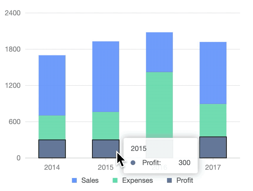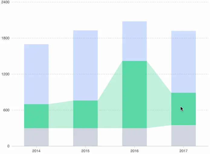 层叠柱状图,根据颜色高亮图形元素交互效果 1,demo 地址:链接
