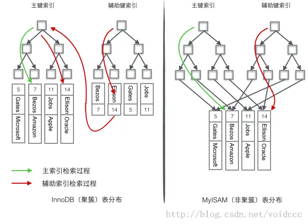 ⑦主键索引采用聚集索引(索引的数据域存储数据文件本身),辅索引的数据域存储主键的值;因此从辅索引查找数据,需要先通过辅索引找到主键值,再访问主键索引;最好使用自增主键,防止插入数据时,为维持B+树结构,文件的大调整。
