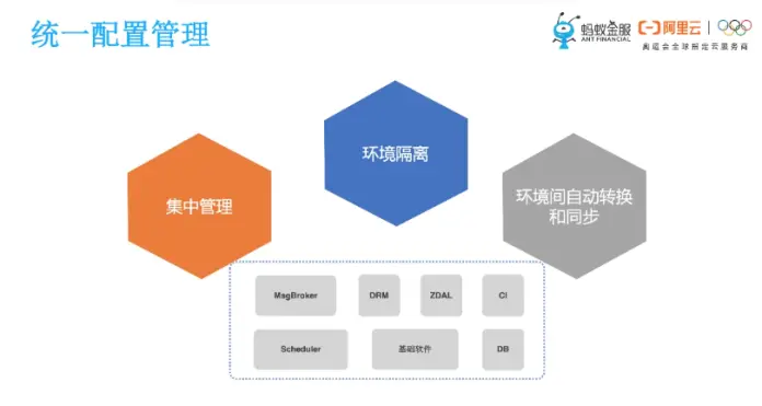 除了应用原数据的统一管理,我们还提到配置统一管理,这里边配置就包括环境的配置、中间件的配置、CI配置、技术栈软件配置等。蚂蚁研发效能平台可以按照不同的环境,对所有的配置项进行集中管理,在研发迭代推进的过程里边,还可以实现配置项在不同环境间的自动转化和生效,这样就避免了研发同学频繁访问配置项控制台进行人肉配置,提效的同时避免人肉错误。