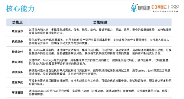 那么,我们把SOFA-LinkE的产品能力做一个总结,大体七个方面:项目协作、代码服务、持续交付、代码分析、测试服务、流程审批、环境管理。